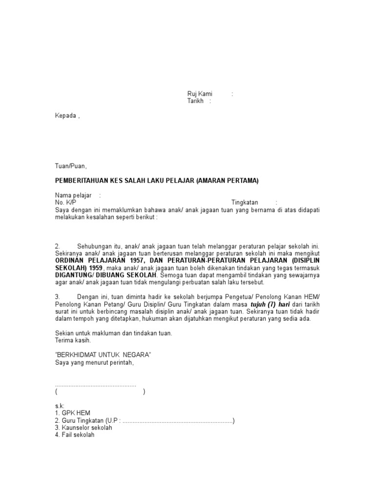 Contoh Surat Amaran Disiplin Amaran kedua ketidakhadiran ke sekolah beturut. The assortment of images Contoh Surat Amaran Disiplin Pelajar that are elected straight by the admin and with high res HD as well as facilitated to download images. Kumpulan Contoh Surat Amaran Salah Laku Pekerja yang Benar 2019.